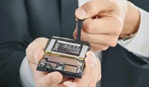 Exemple d’application du ruban adhésif tesa® Bond & Detach® 76565 : la réparation ou recyclage d’une batterie de téléphone portable