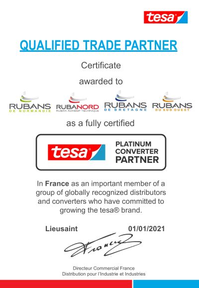L’agrément tesa® Platinum Converter est une distinction décernée aux entreprises spécialisées dans la transformation, la découpe sur mesure et le complexage d’adhésifs techniques.