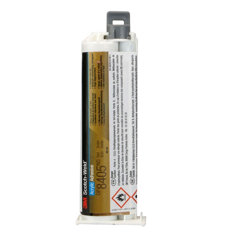 L’Adhésif 3M™ Scotch-Weld™ DP8405NS est un adhésif acrylique bi-composant, renforcé et à prise rapide, qui fait partie de la gamme des colles structurales Scotch-Weld™.