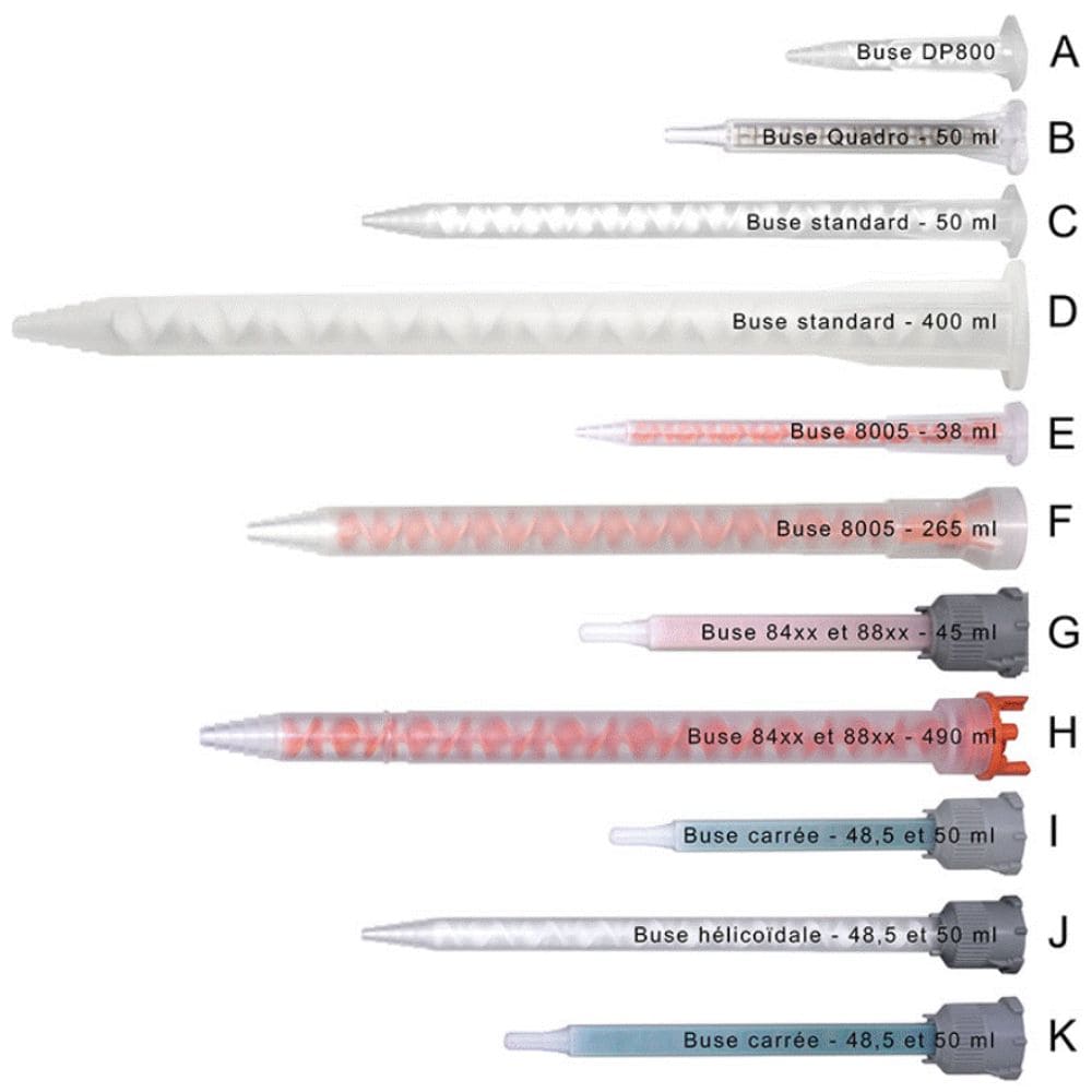 Il suffit ensuite d’appliquer la buse adaptée à la contenance de la cartouche ainsi qu’à son ratio de mélange.