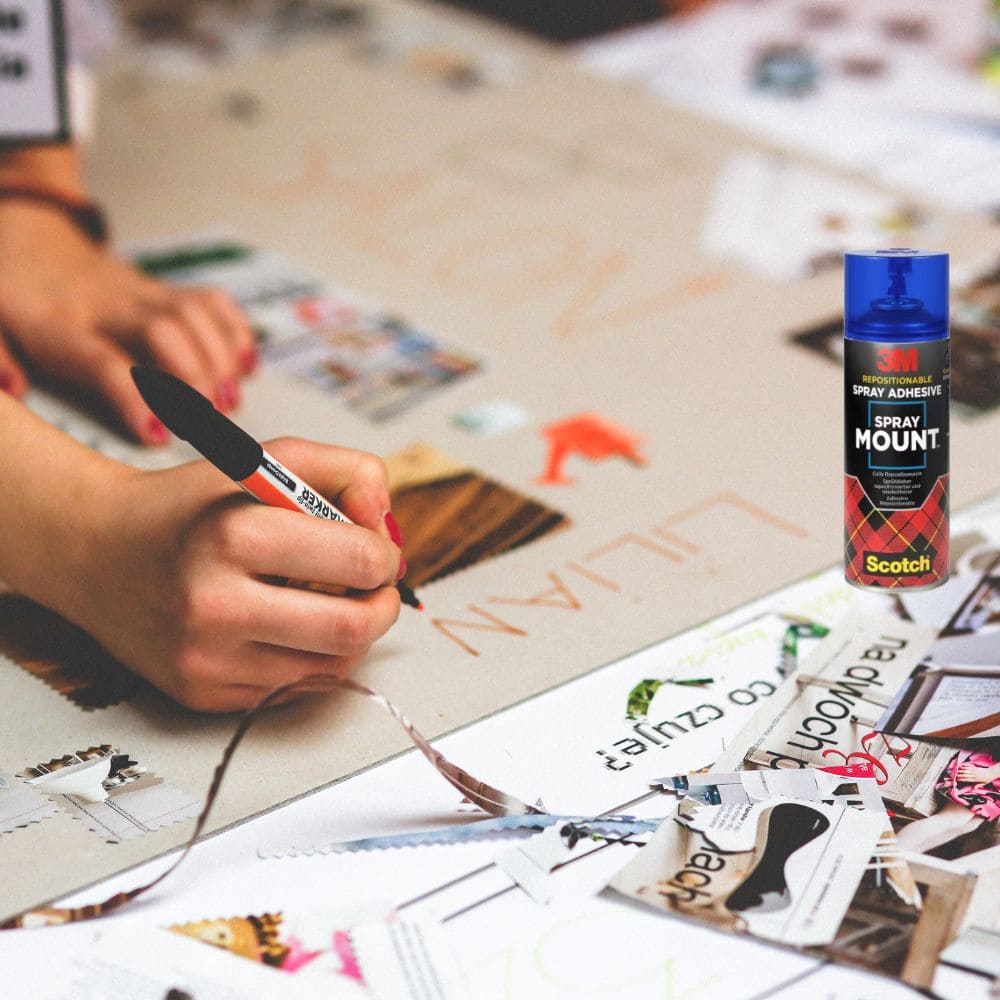 L’adhésif 3M™ Scotch® SprayMount™ est un adhésif de haute qualité indiqué pour le collage transparent et le montage de la plupart des matériaux courants comme les maquettes en papier et carton, photos et divers designs.