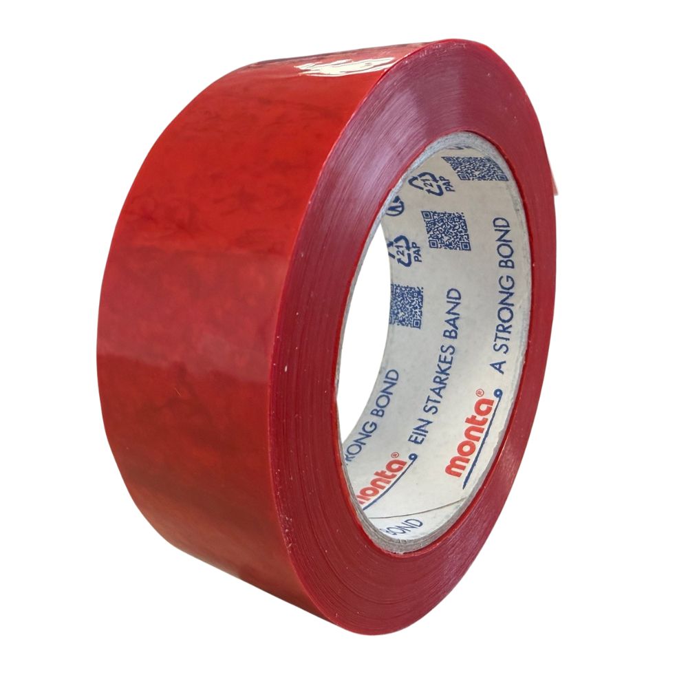 Très élastique, le film rouge en PVC non orienté est enduit d’une masse adhésive transparente en caoutchouc naturel.