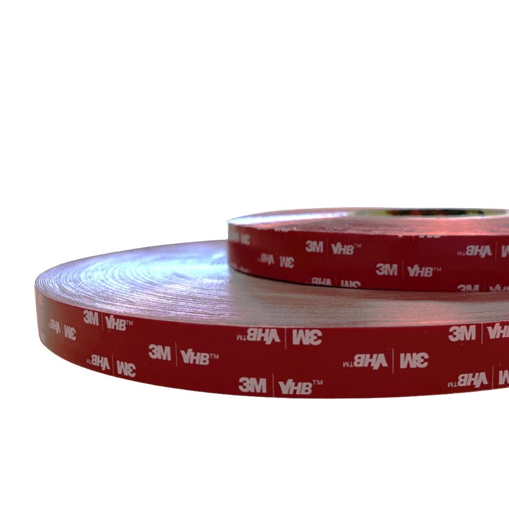 Le ruban 3M™ VHB™ est un adhésif acrylique durable aux propriétés viscoélastiques. Il offre un ruban mousse double face extrêmement résistant qui peut adhérer à un large éventail de substrats, notamment le métal, l’aluminium, l’acier inoxydable, l’acier galvanisé, le verre, de nombreux matériaux composites et plastiques, l’acrylique, le polycarbonate, l’ABS, le bois peint ou imprégné.